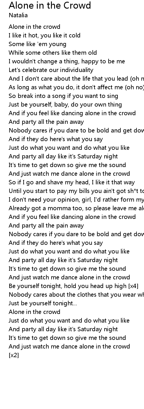 | And if you feel like dancing alone in the crowd | |