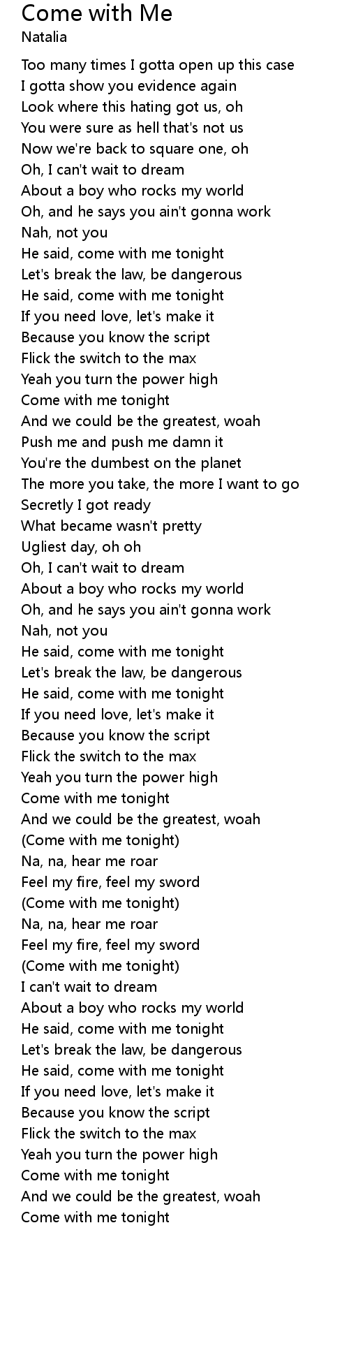 | Come with me tonight |