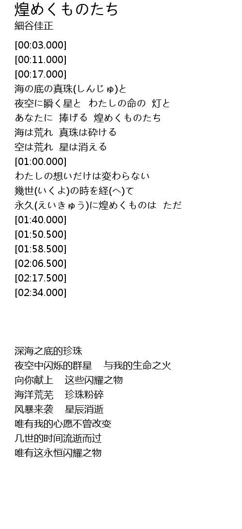 | [00:34.500] | あなたに 捧げる 煌めくものたち |