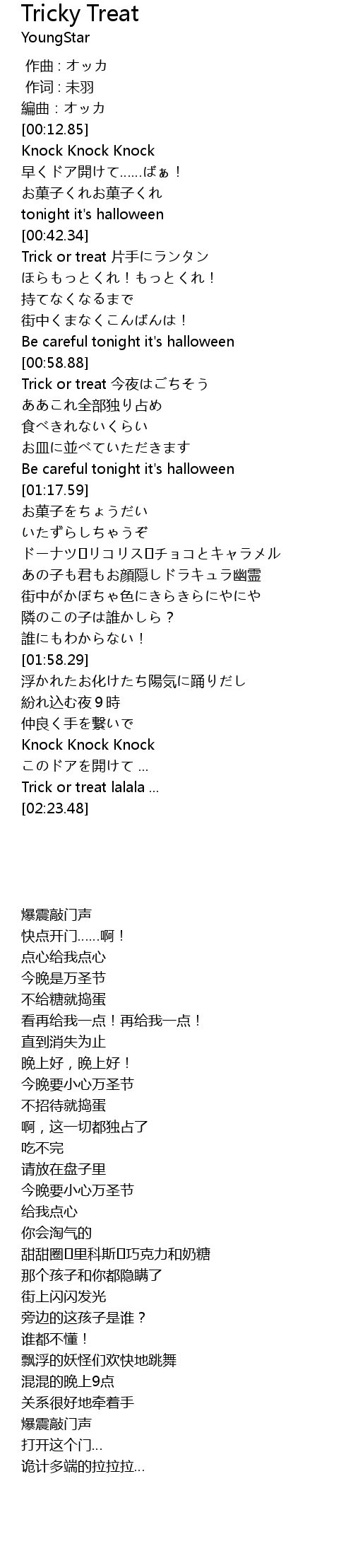 | [01:03.65] | Trick or treat 今夜はごちそう |