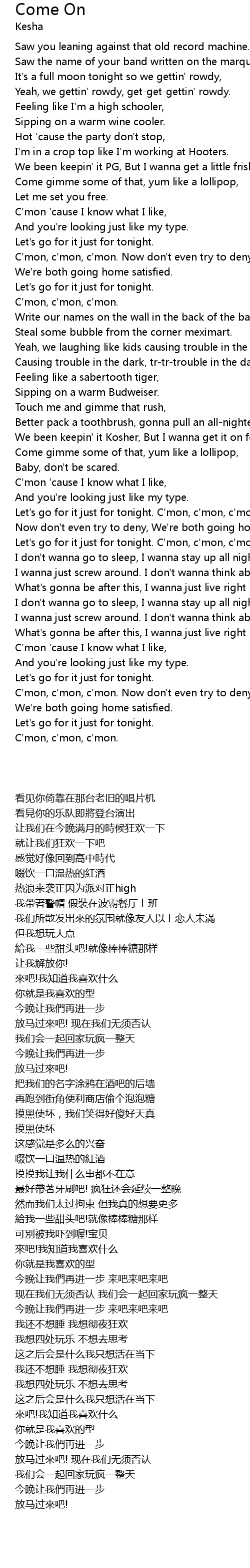Let's go for it just for tonight. C'mon, c'mon, c'mon. |