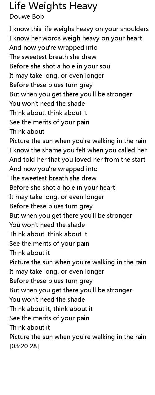 I know this life weighs heavy on your shoulders |