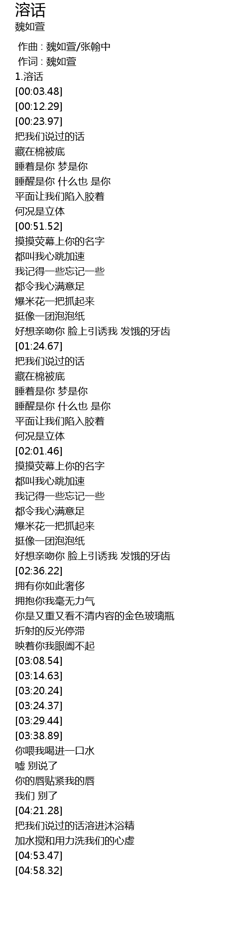 | [00:00.00] | 作曲 : 魏如萱/张翰中 |