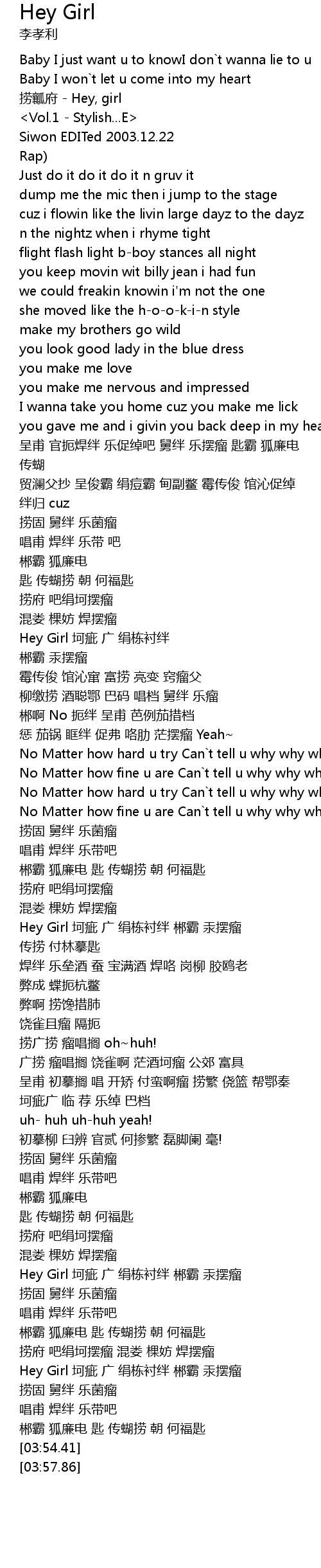 | [03:19.81] | Hey Girl 坷疵 广 绢栋衬绊 郴霸 汞摆瘤 |