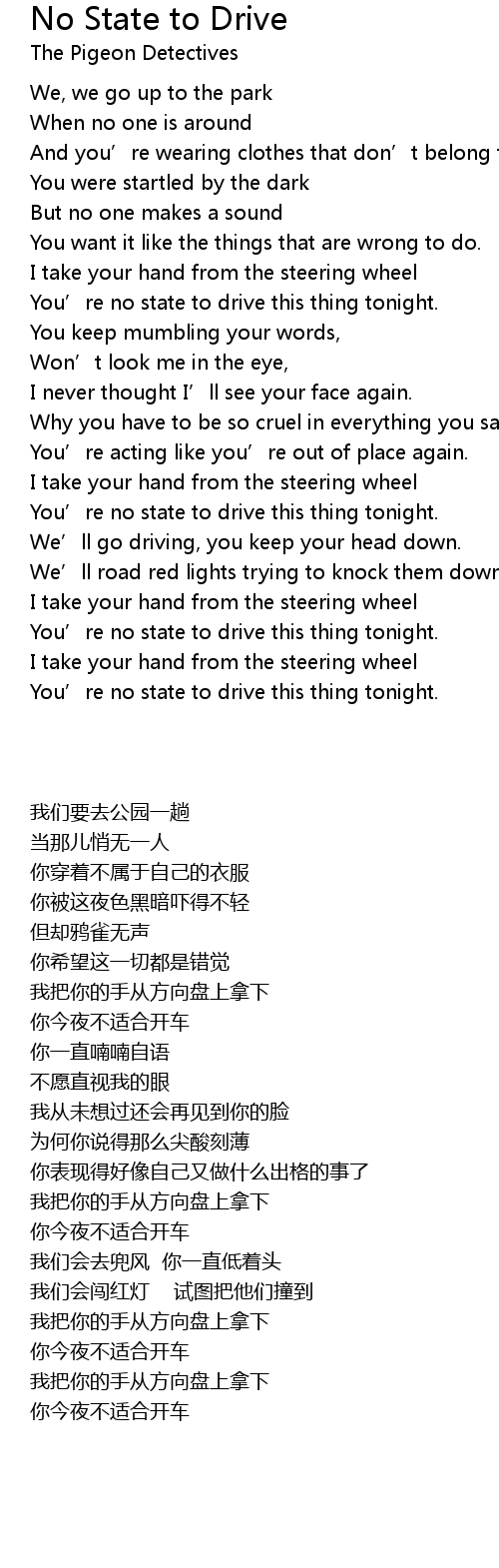 | [00:55.75] | You' re no state to drive this thing tonight. |