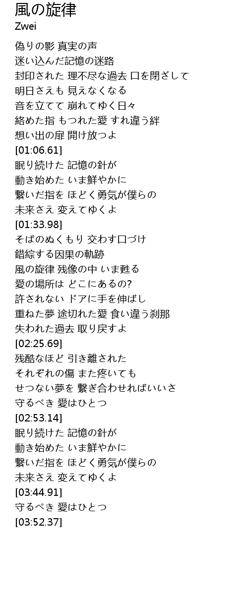 | [01:54.09] | 風の旋律 残像の中 いま甦る |