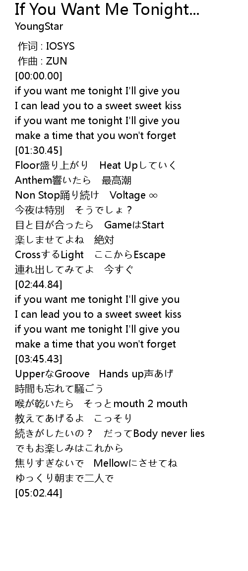 | [01:15.26] | if you want me tonight I' ll give you |
