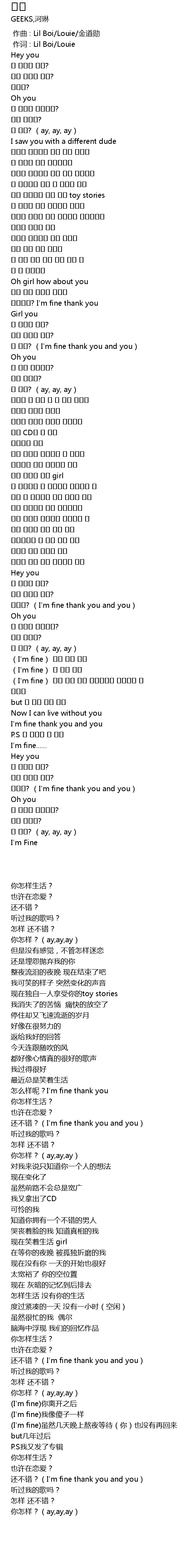 | [01:15.190] | 좀 어때? (I'm fine thank you and you) |
