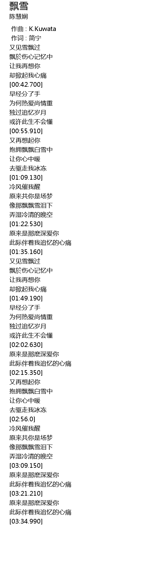 | [00:59.320] | bao yong piao piao bai xue zhong |