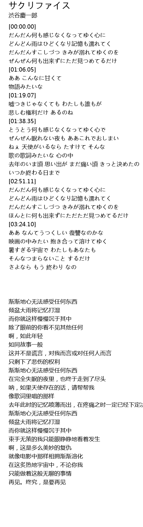| [03:24.35] | ああ なんてうつくしい 復讐なのかな |