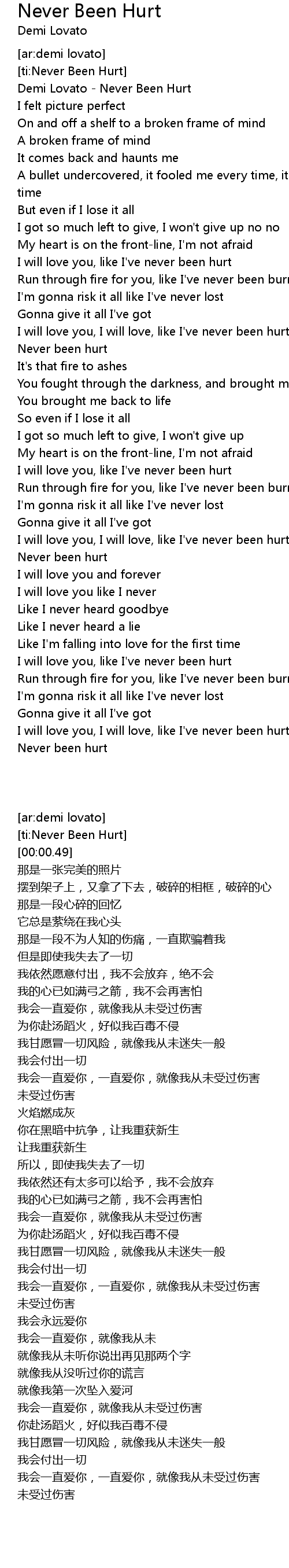 Demi Lovato - Never Been Hurt |