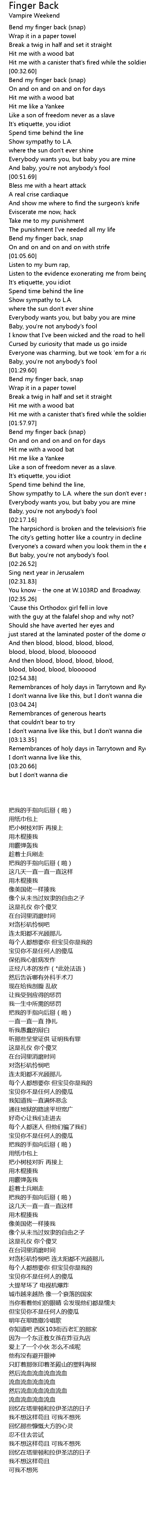 | [00:33.34] | Bend my finger back (snap) |