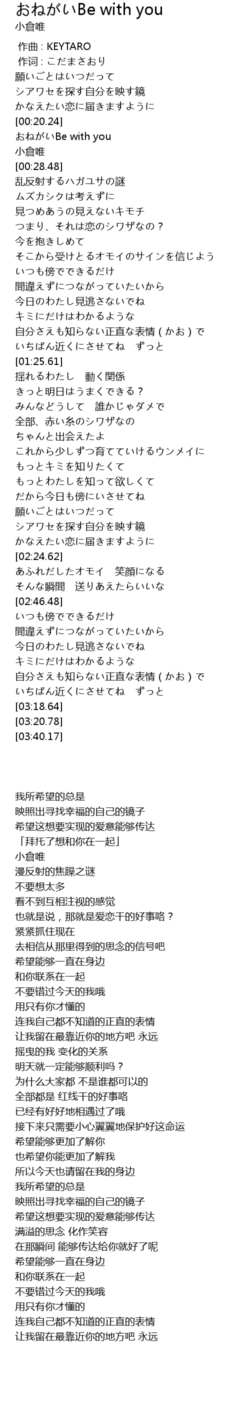 | [00:21.24] | おねがいBe with you |
