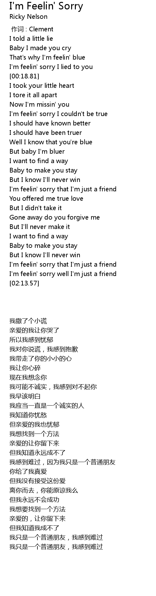 | [02:02.95] | I' m feelin' sorry well I' m just a friend |