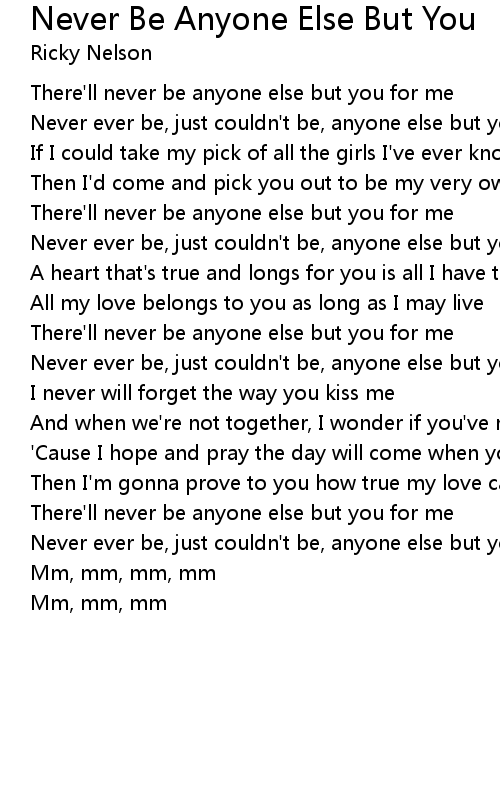 There'll never be anyone else but you for me |