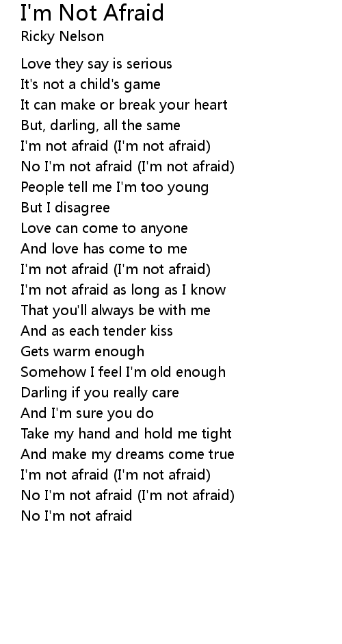 No I'm not afraid (I'm not afraid) |