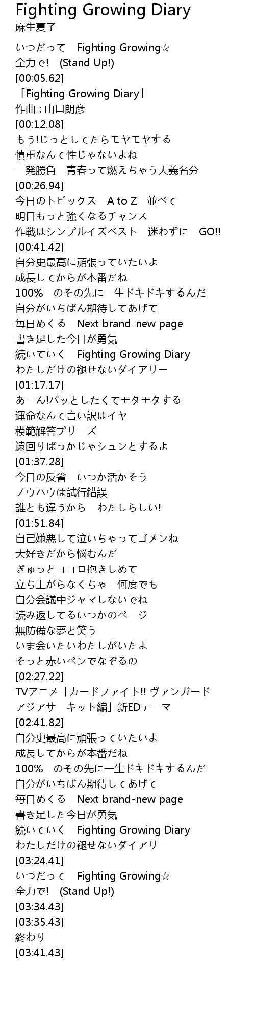 | [03:30.69] | いつだって Fighting Growing☆ |