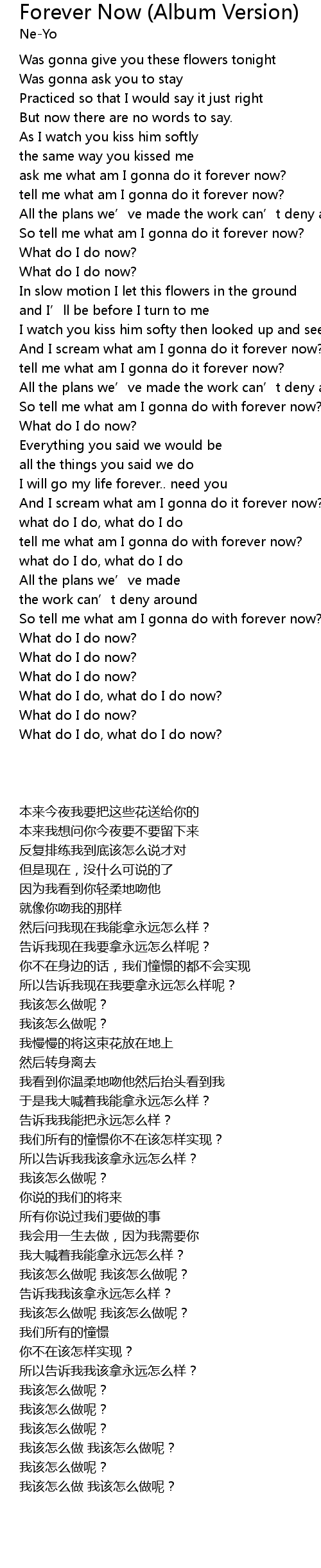 | [00:44.97] | tell me what am I gonna do it forever now? |