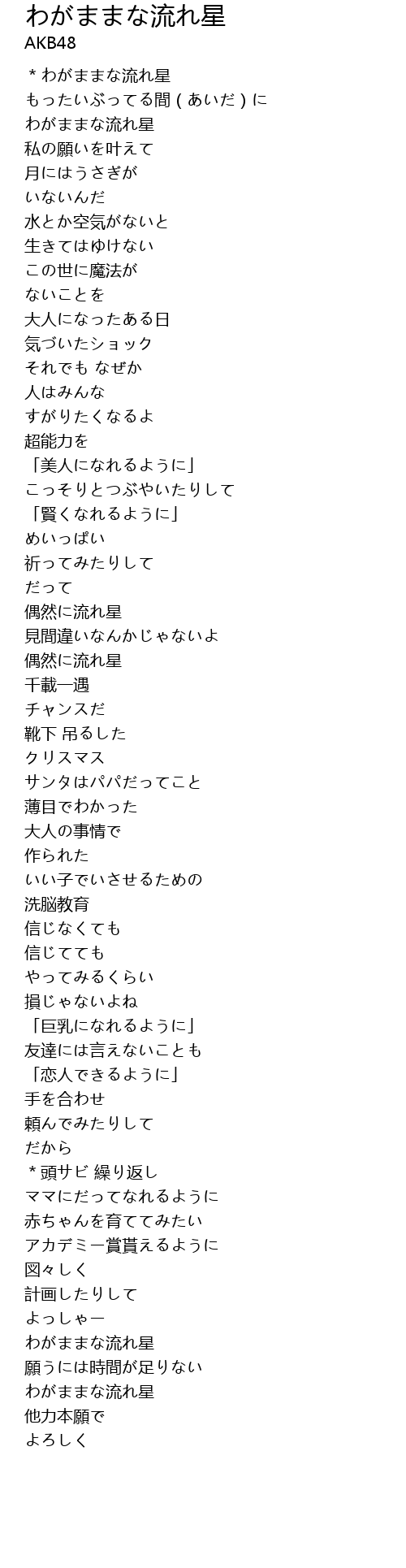 *わがままな流れ星 |