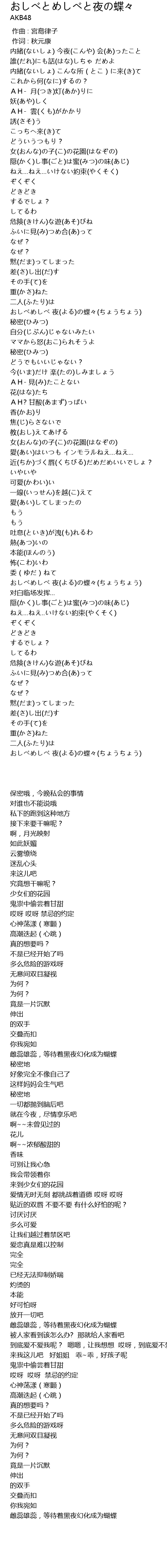 | [02:31.15] | おしべめしべ 夜(よる)の蝶々(ちょうちょう) |