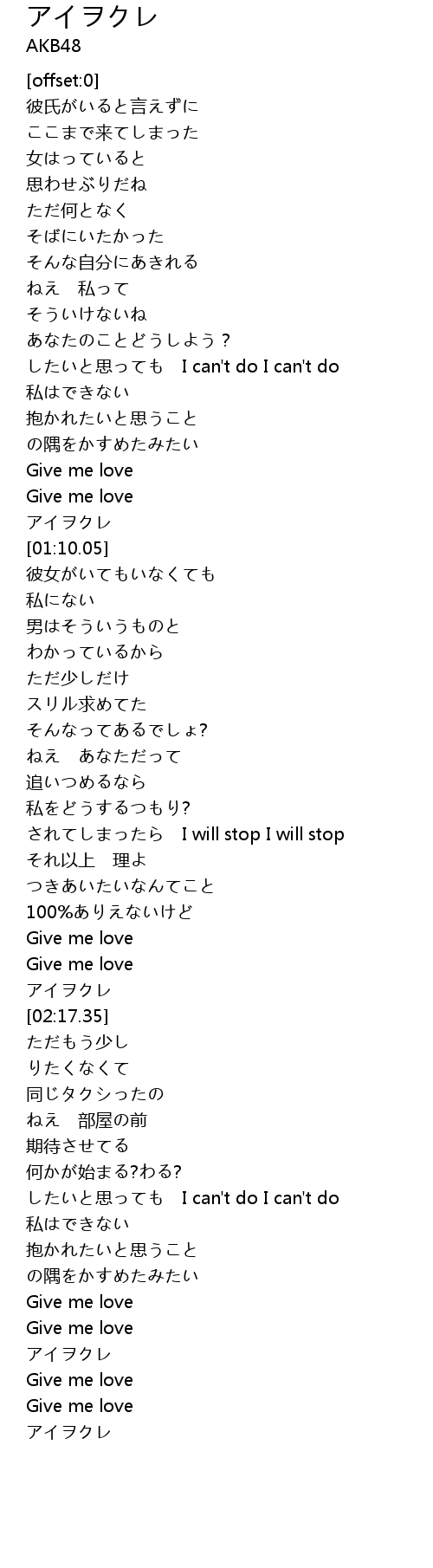 | [02:49.41] | したいと思っても I can't do I can't do |