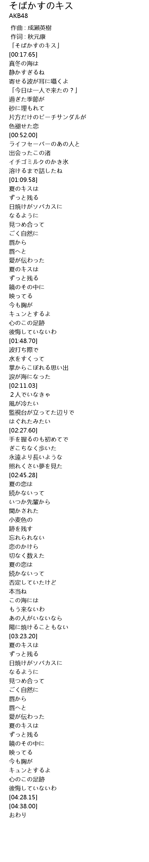 | [03:49.48] | 夏のキスは |