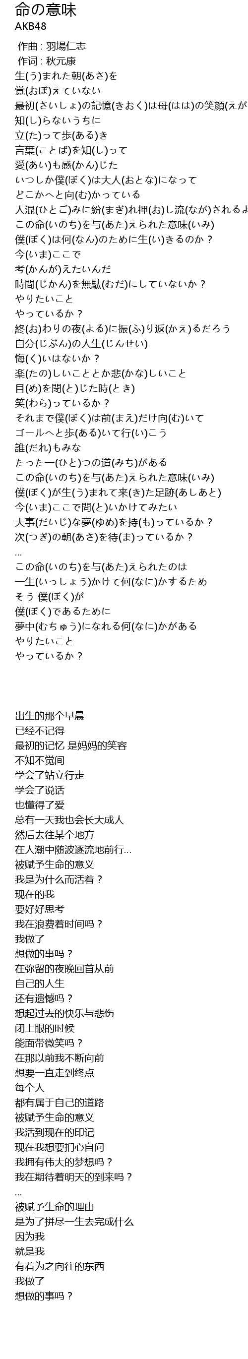 | [03:11.50] | この命(いのち)を与(あた)えられた意味(いみ) |