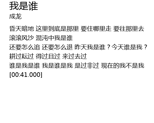 | [00:34.000] | 谁是我是谁 我是谁是我 是过非过 现在的我不是我 |