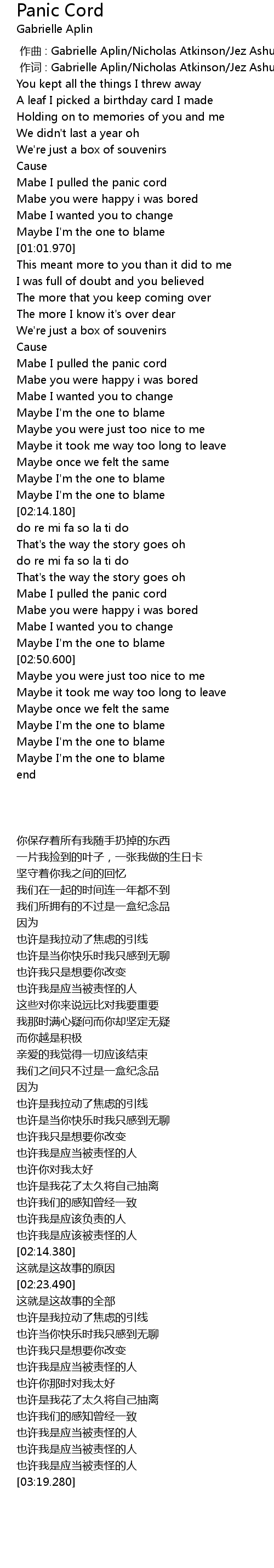 | [00:01.00] | 作词 : Gabrielle Aplin/Nicholas Atkinson/Jez Ashurst |