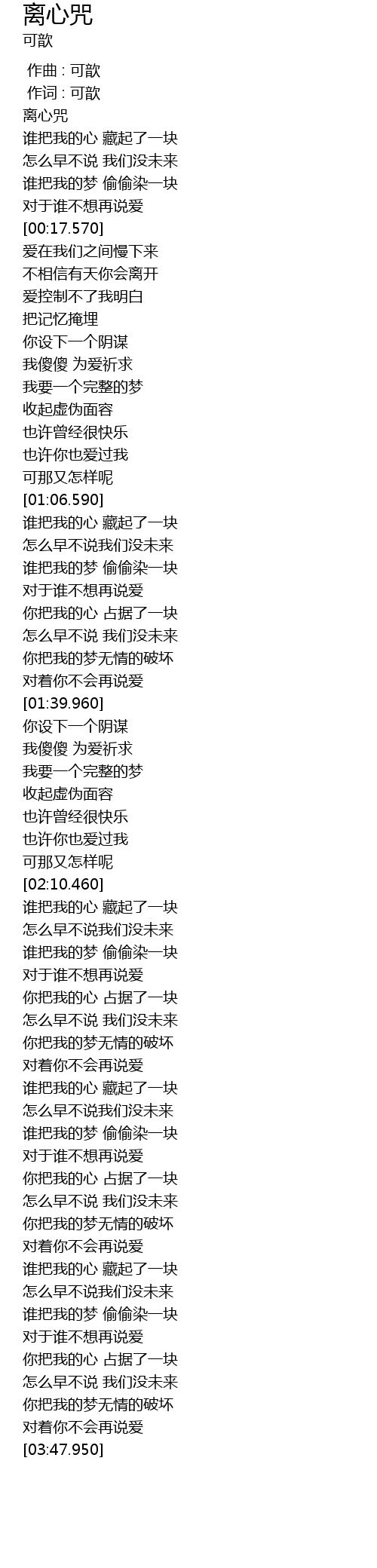 | [00:00.00] | zuo qu : ke xin |