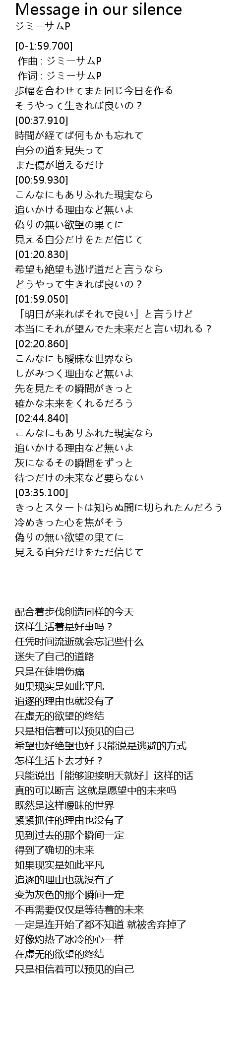 | [02:10.200] | běn dāng wàng wèi lái yán qiè? |