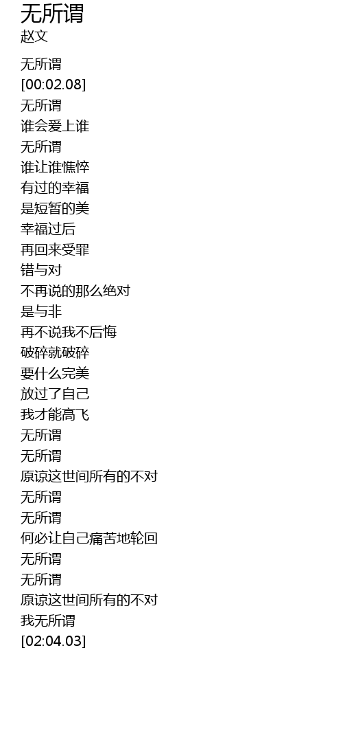 | [01:40.17] | 无所谓 |