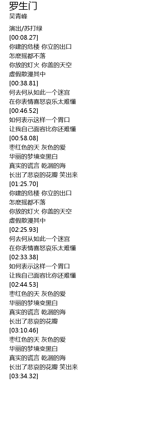 | [02:03.77] | 你建的危楼 你立的出口 |