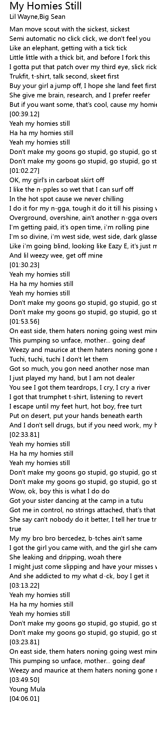 | [02:01.77] | Weezy and maurice at them haters noning gone rest, pumpin so on place |
