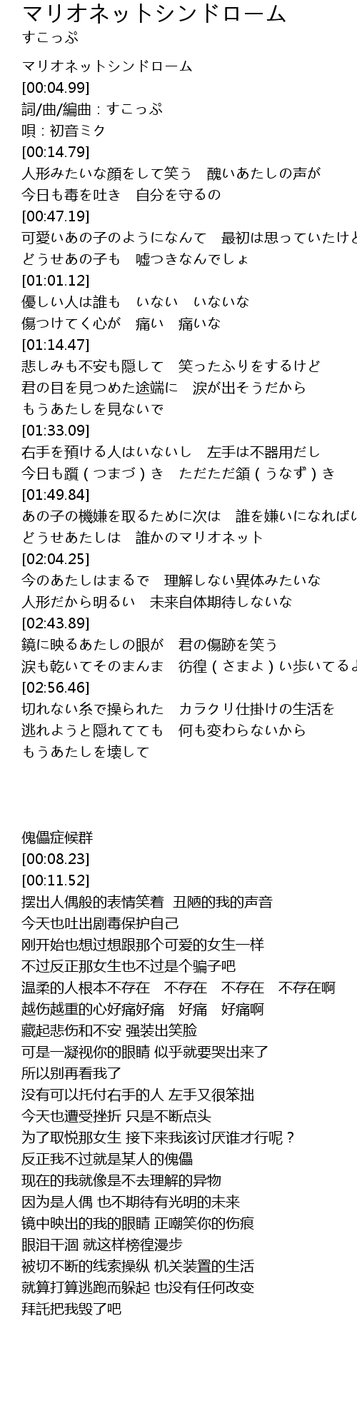 | [00:00.00] | マリオネットシンドローム |