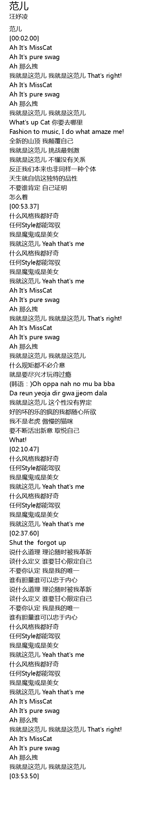 | [01:41.58] | 我就是这范儿 我就是这范儿 |