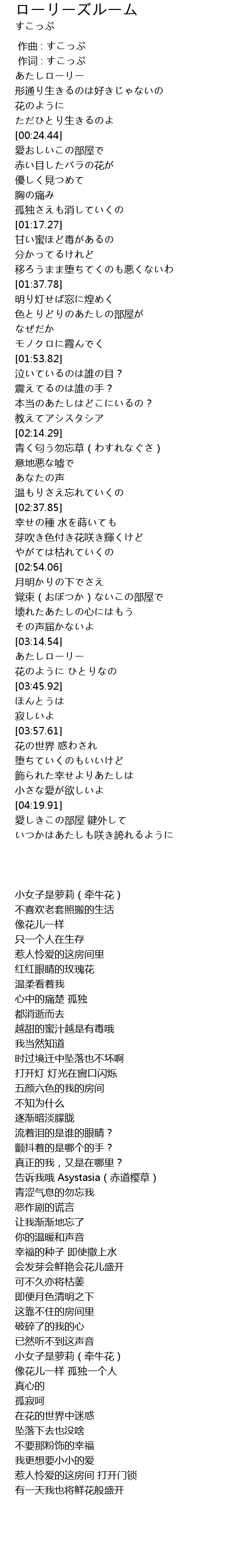 | [02:59.90] | 覚束(おぼつか)ないこの部屋で |