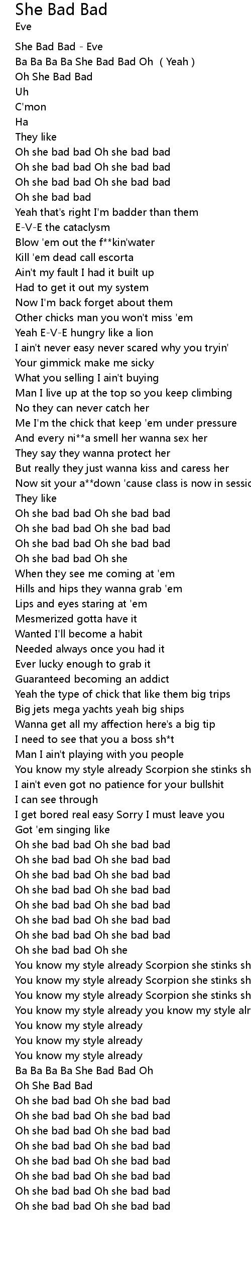 | [00:00.191] | She Bad Bad - Eve |