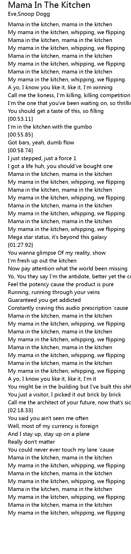 | [02:44.99] | Mama in the kitchen, mama in the kitchen |