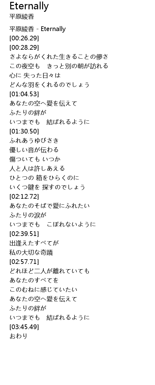 | [00:00.00] | 平原綾香 - Eternally |