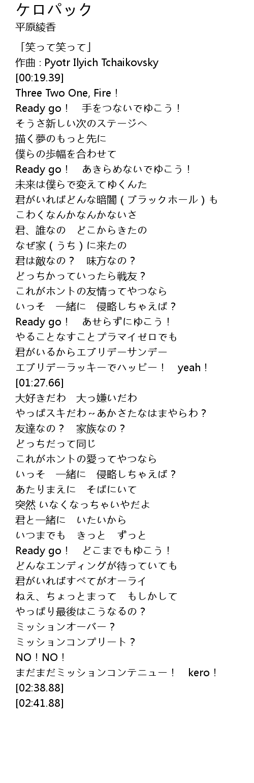 | [02:36.26] | まだまだミッションコンテニュー! kero! |
