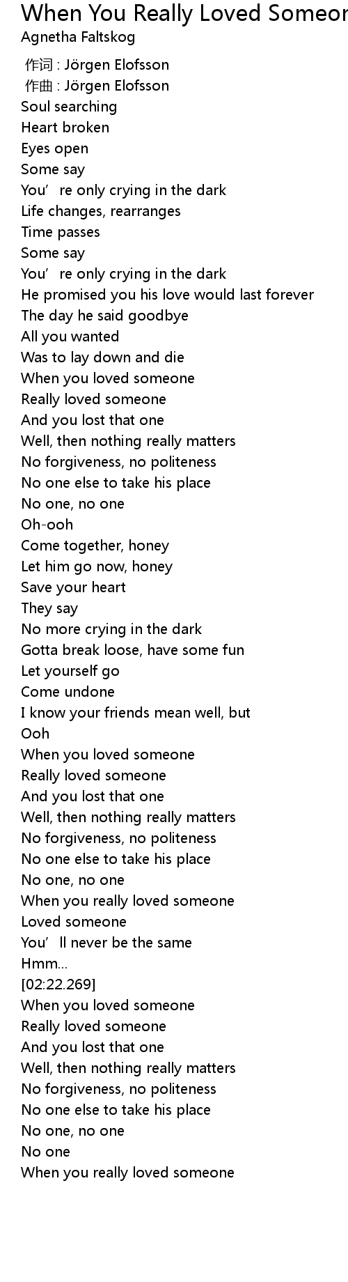 | [00:00.000] | 作词 : Jörgen Elofsson |