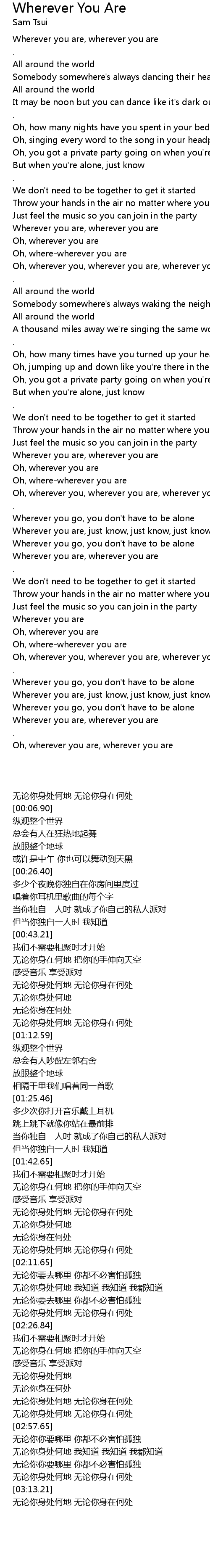 Wherever you are, wherever you are |