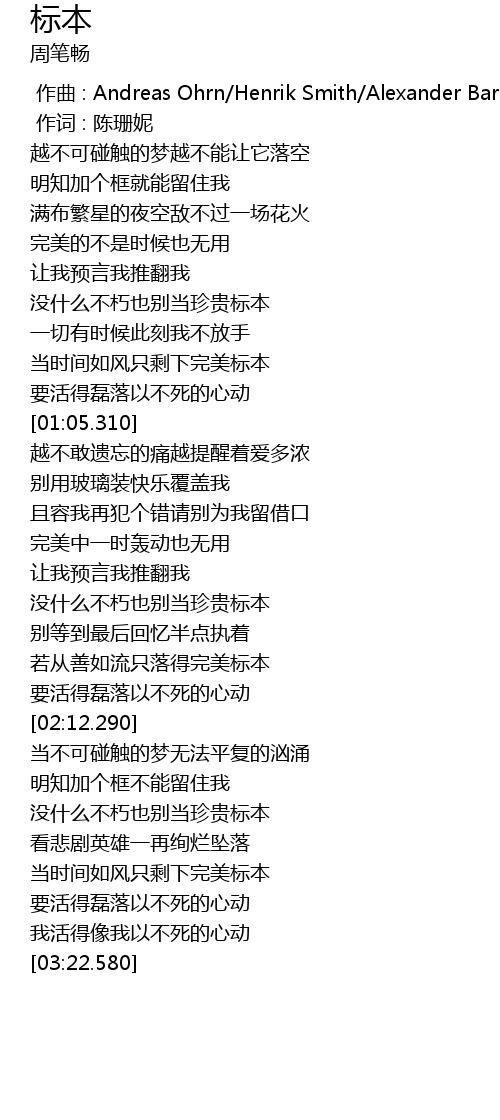 | [00:53.820] | 当时间如风只剩下完美标本 |