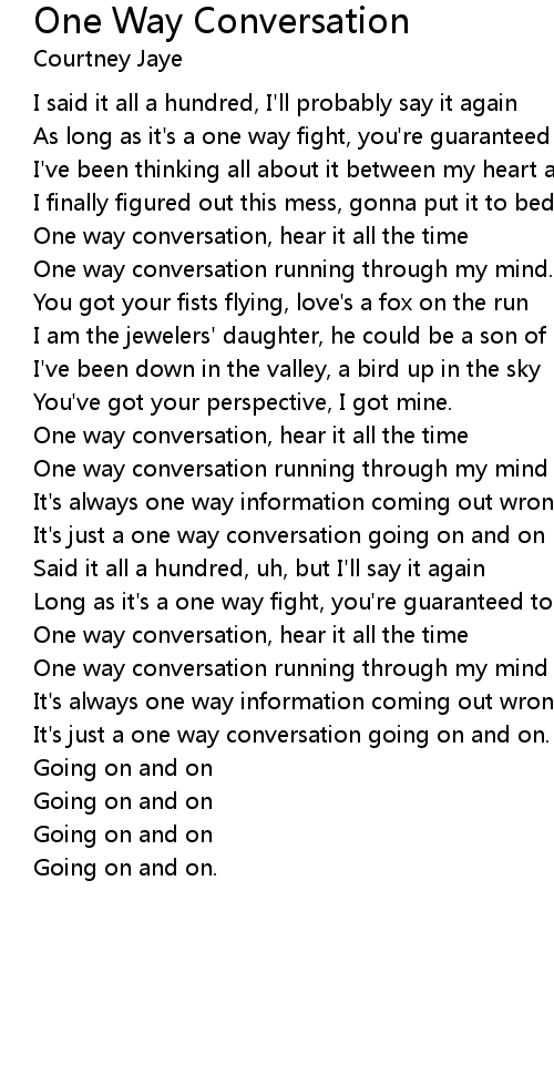 One way conversation running through my mind |