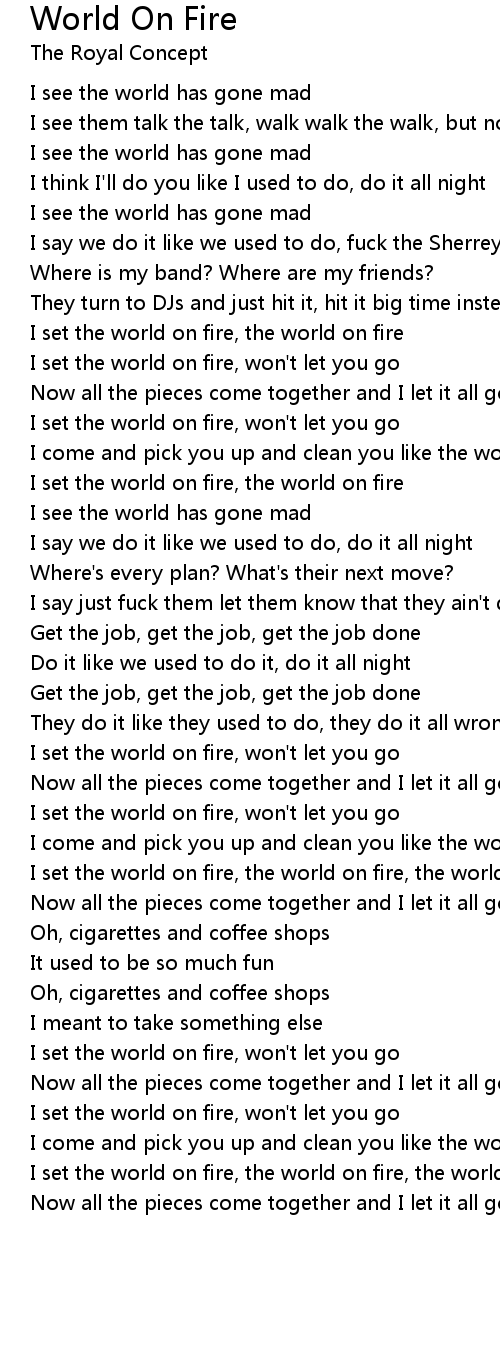 I set the world on fire, the world on fire |