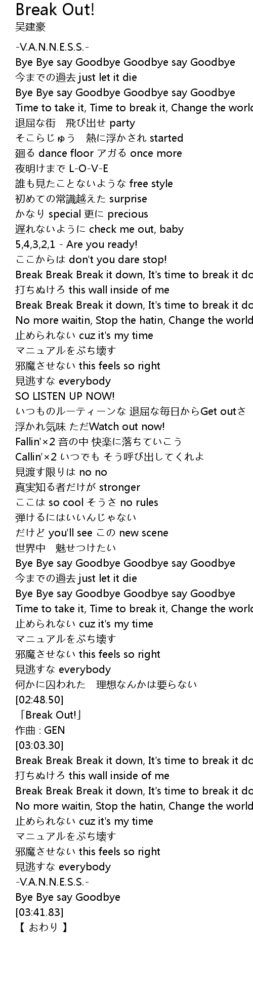| [03:05.30] | Break Break Break it down, It's time to break it down |