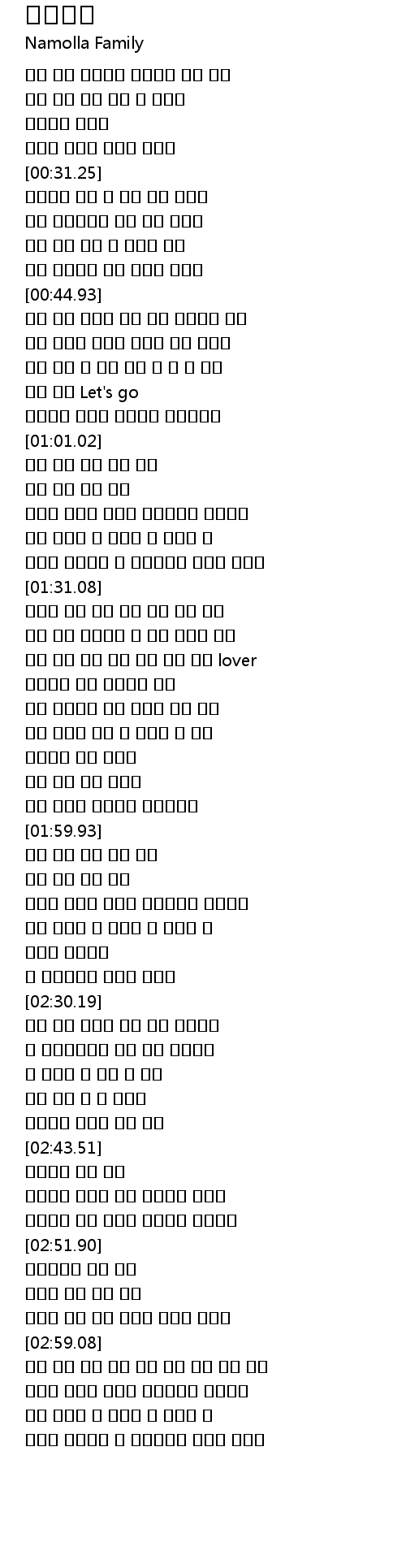| [01:45.62] | 내가 사랑하는 그녀 나밖에 없는 그녀 |