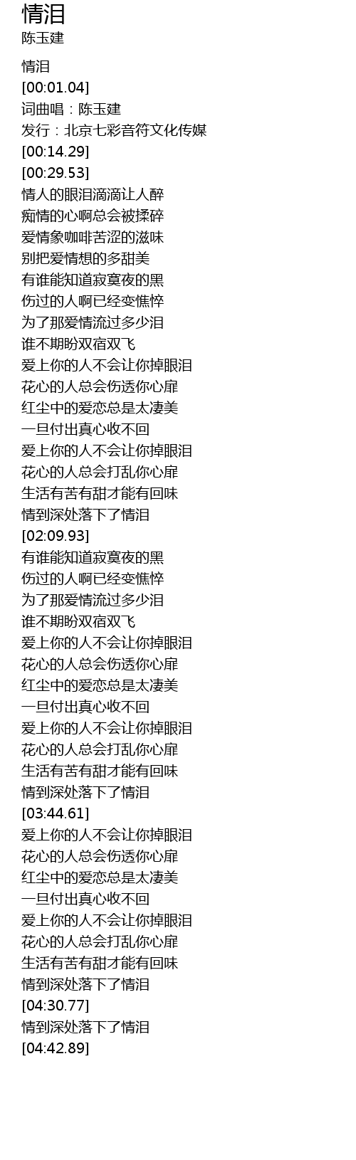 | [00:03.47] | 词曲唱:陈玉建 |
