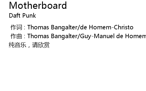 | [00:01.000] | 作曲 : Thomas Bangalter/Guy-Manuel de Homem-Christo |